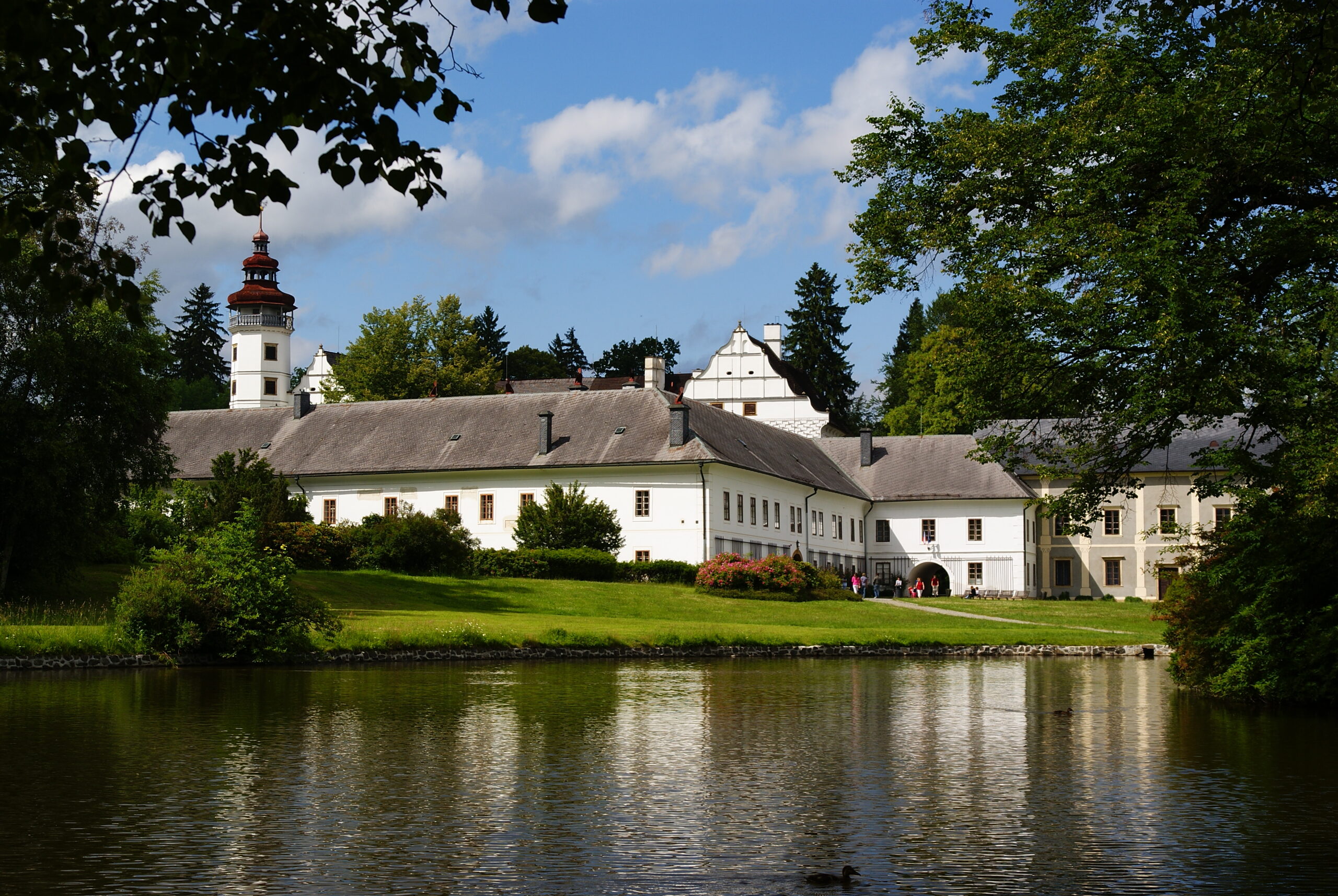Zámek z 16.století + krásný zámecký park + letní akce v zámeckém parku – např. Dřevosochání